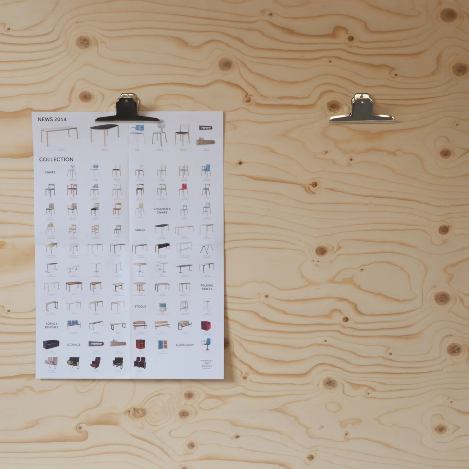 We have developed a graphical concept for a leaflet for Balzar Beskow. The objective was to show their news for 2014 but also their entire furniture collection. We chose to use a folded A2. On one side of the poster we feature some of the news with an environment image. On the other side, we show Balzar Beskow's entire collection. This is an efficient way of showcasing the products and an interesting manner on how you can provide a lot of information on a small amount of paper. It's small size and weight makes it easy to hand out, easy to carry and economic to send.