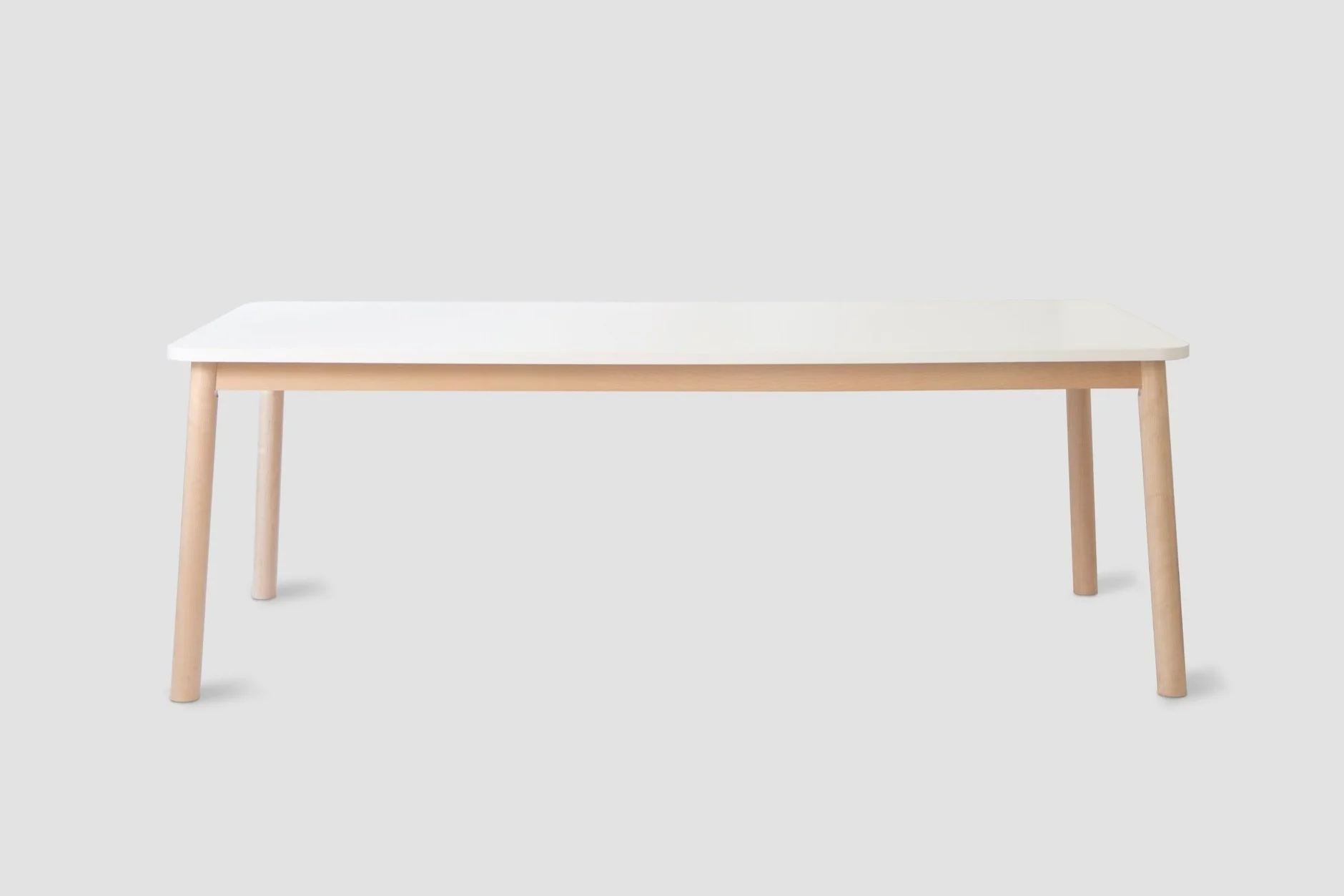 B-100 L is a development of Balzar Beskows former B-100 tables. There was a demand for a larger table in the same family. To cope with larger tabletops without being unstable we adjusted the table components dimensions. The frame is sturdier and even the legs have become stronger and angled to prevent movement. B-100 L was given the same characteristic detail you can see in the meeting between the leg and the rail. The table is available in different formats: rectangular, square and circular. It comes in different sizes and materials.